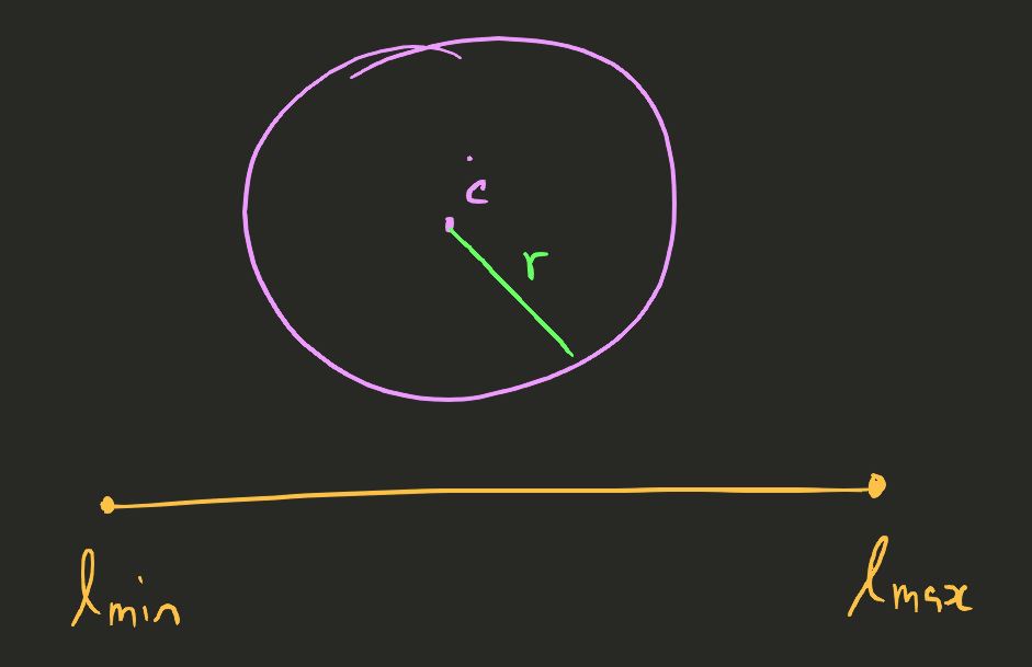 Thankfully, this is conceptually easy to solve. We extend our line ends, $ \dot{l_{min}} $ and $ \dot{l_{max}} $, by a factor of $r$. We update our list: