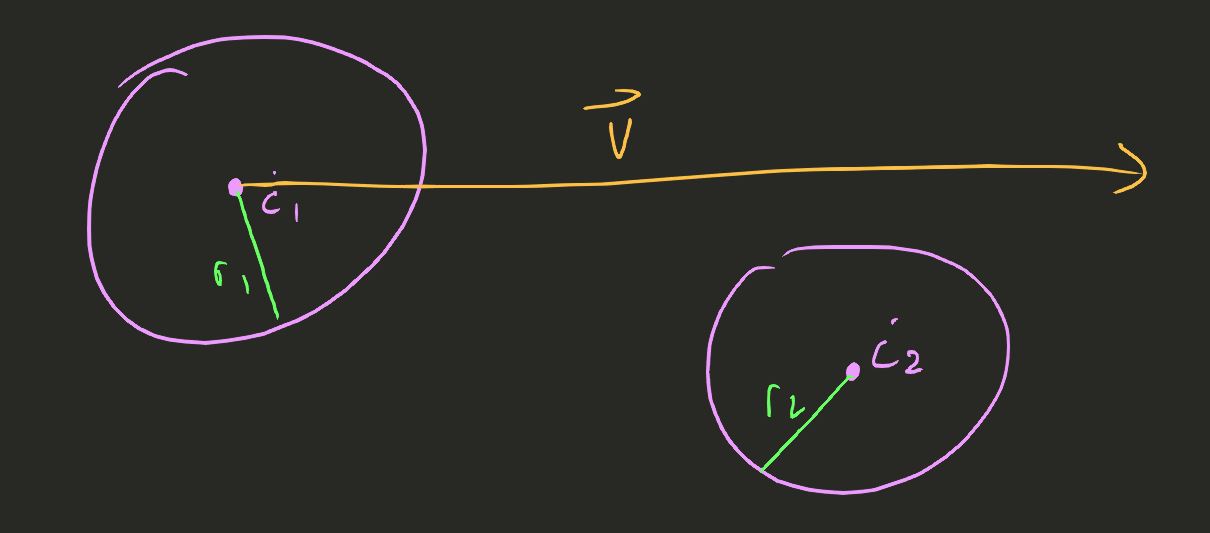Now that we have this, we can expend this concept to deal with moving circle vs static circle. What we have visually is something like the following: