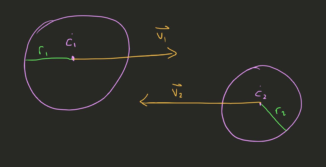 Just like the algorithm we did for 'moving circle vs static circle', we try to link the problem back to collision between a circle and a line. This means that we have to make one of the circles static.